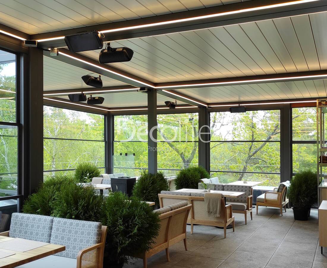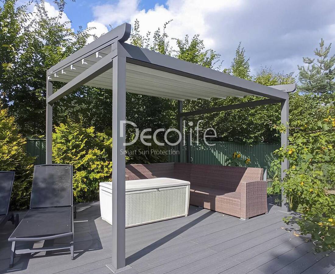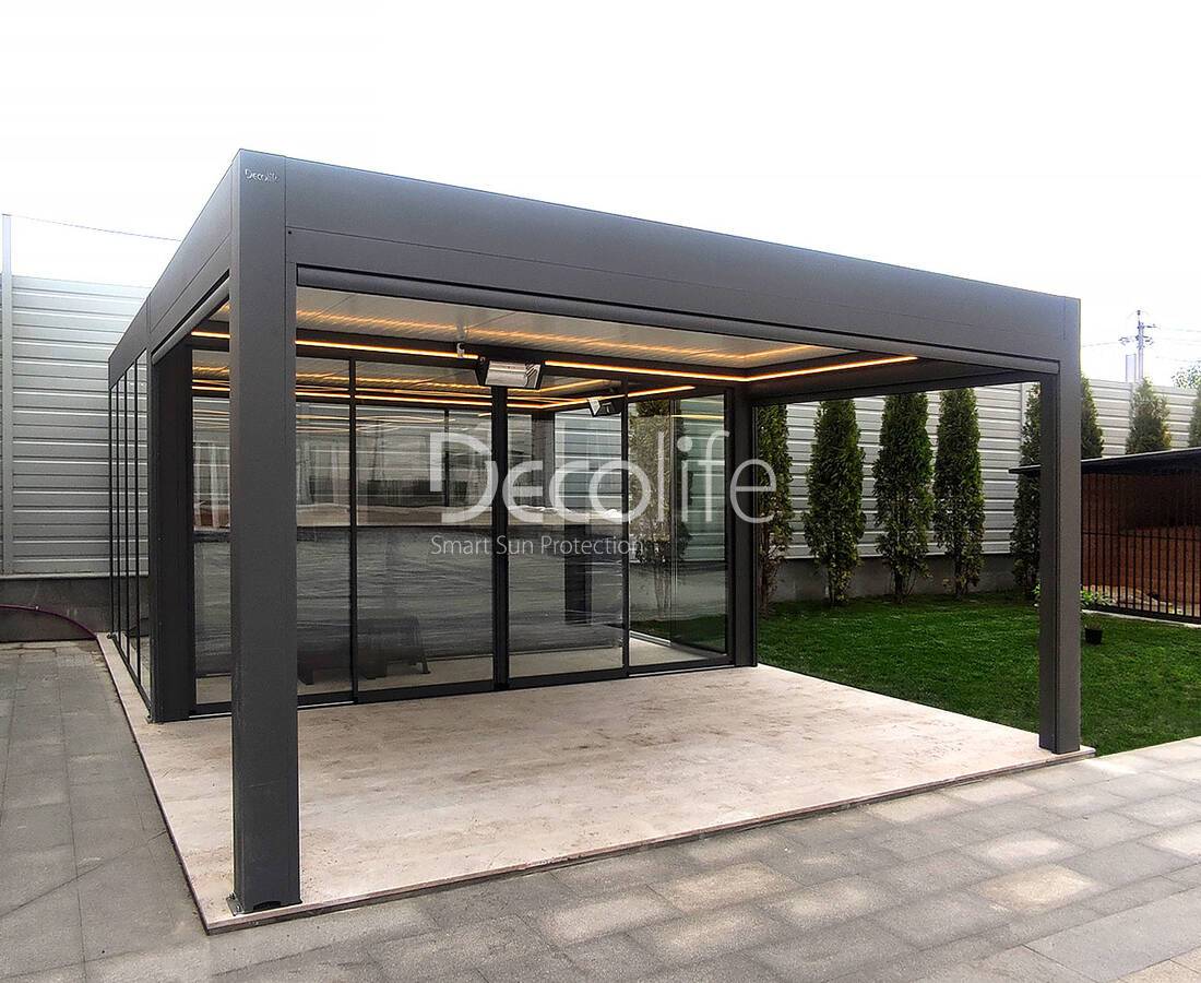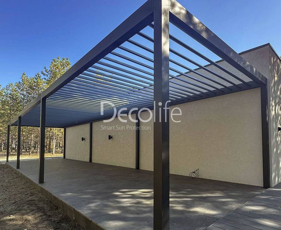 Their task is to create an ideal microclimate. Bioclimatic pergolas come with sliding and turning slats, as well as with PIR sandwich panels.