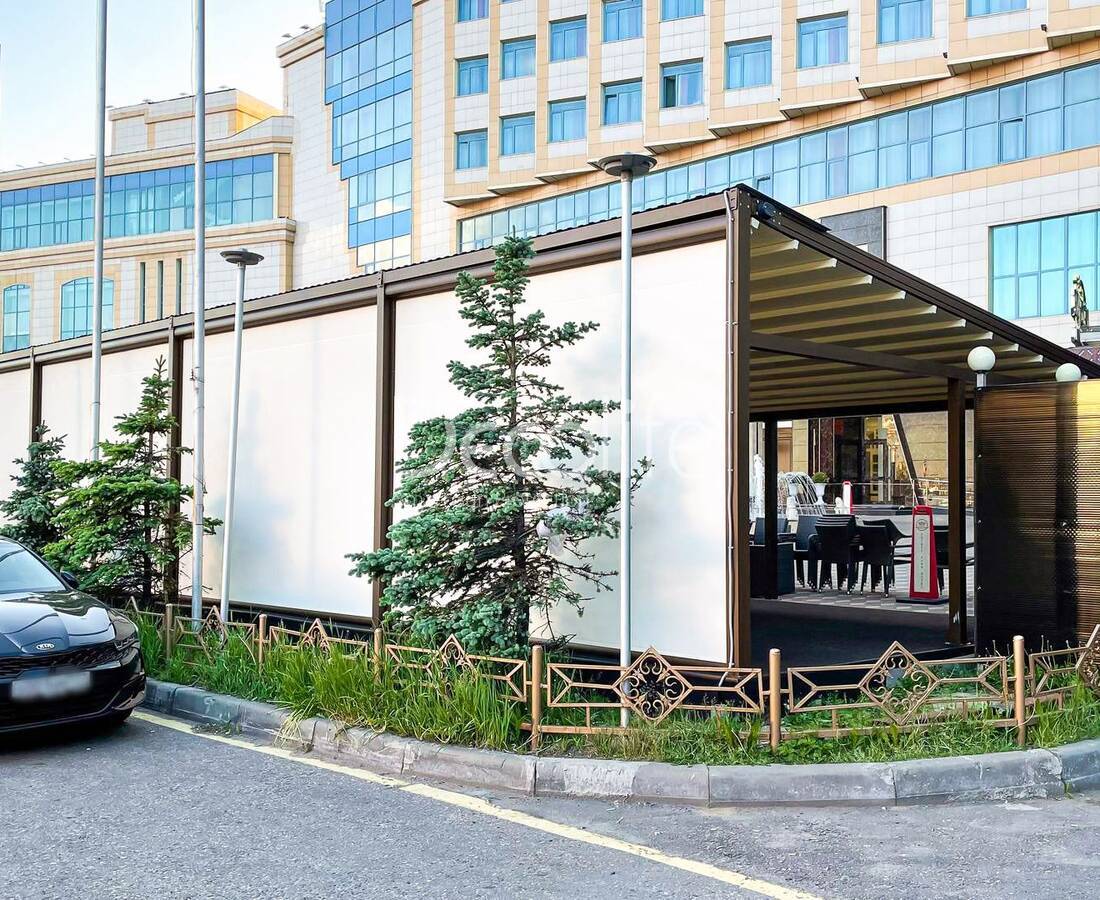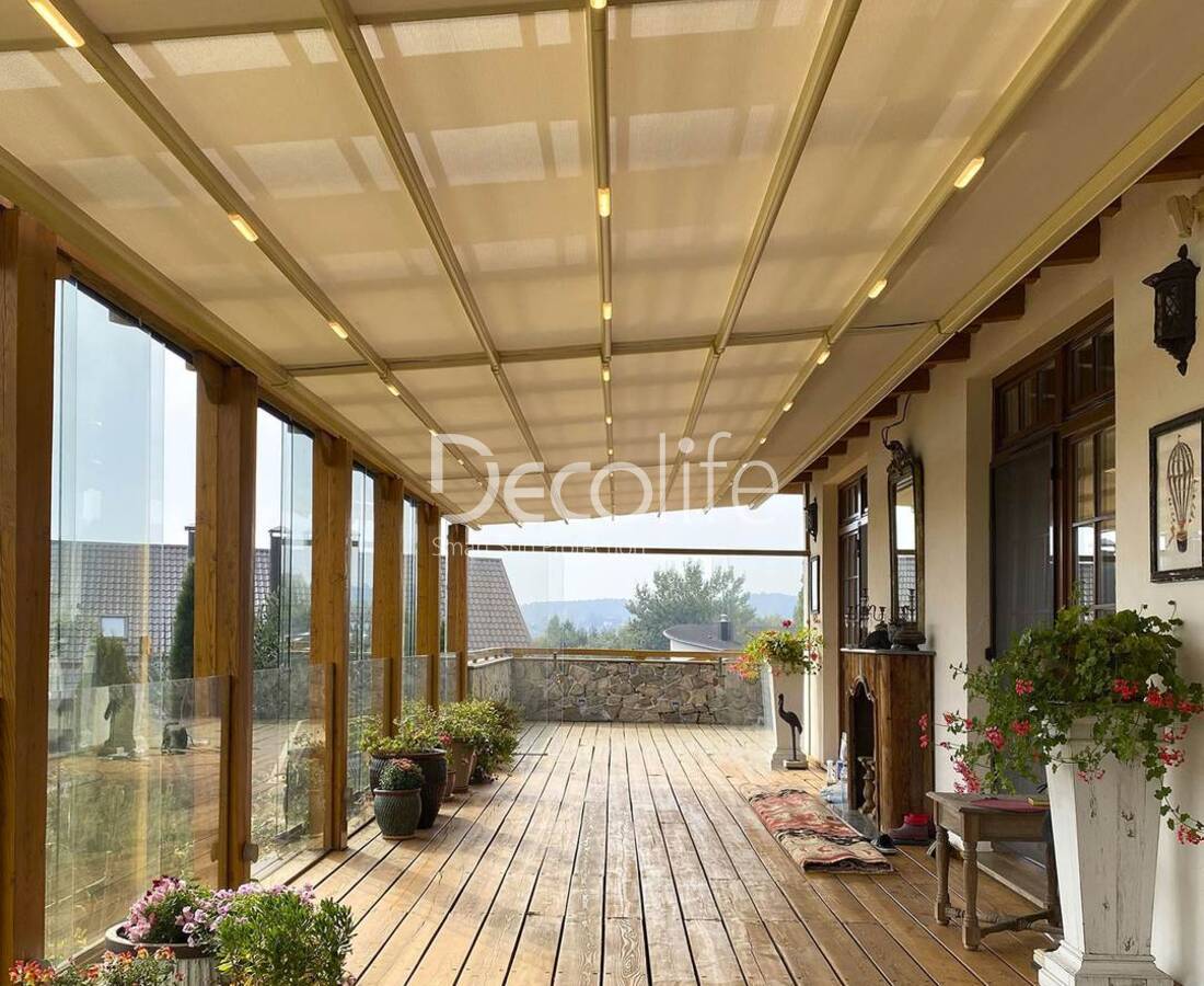 In pergolas covered with awning fabric, a special waterproof, elastic, resistant to mechanical damage material is used.